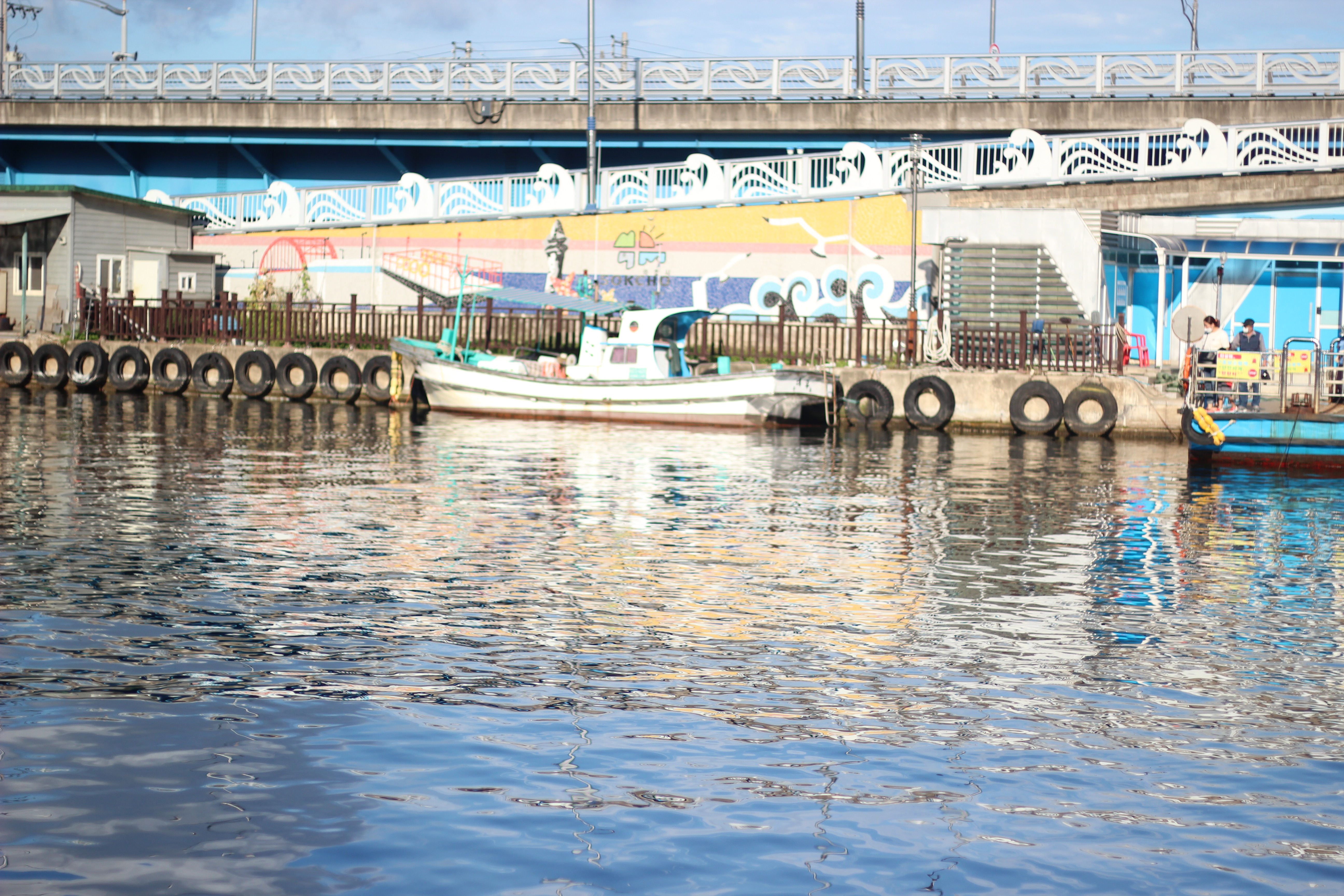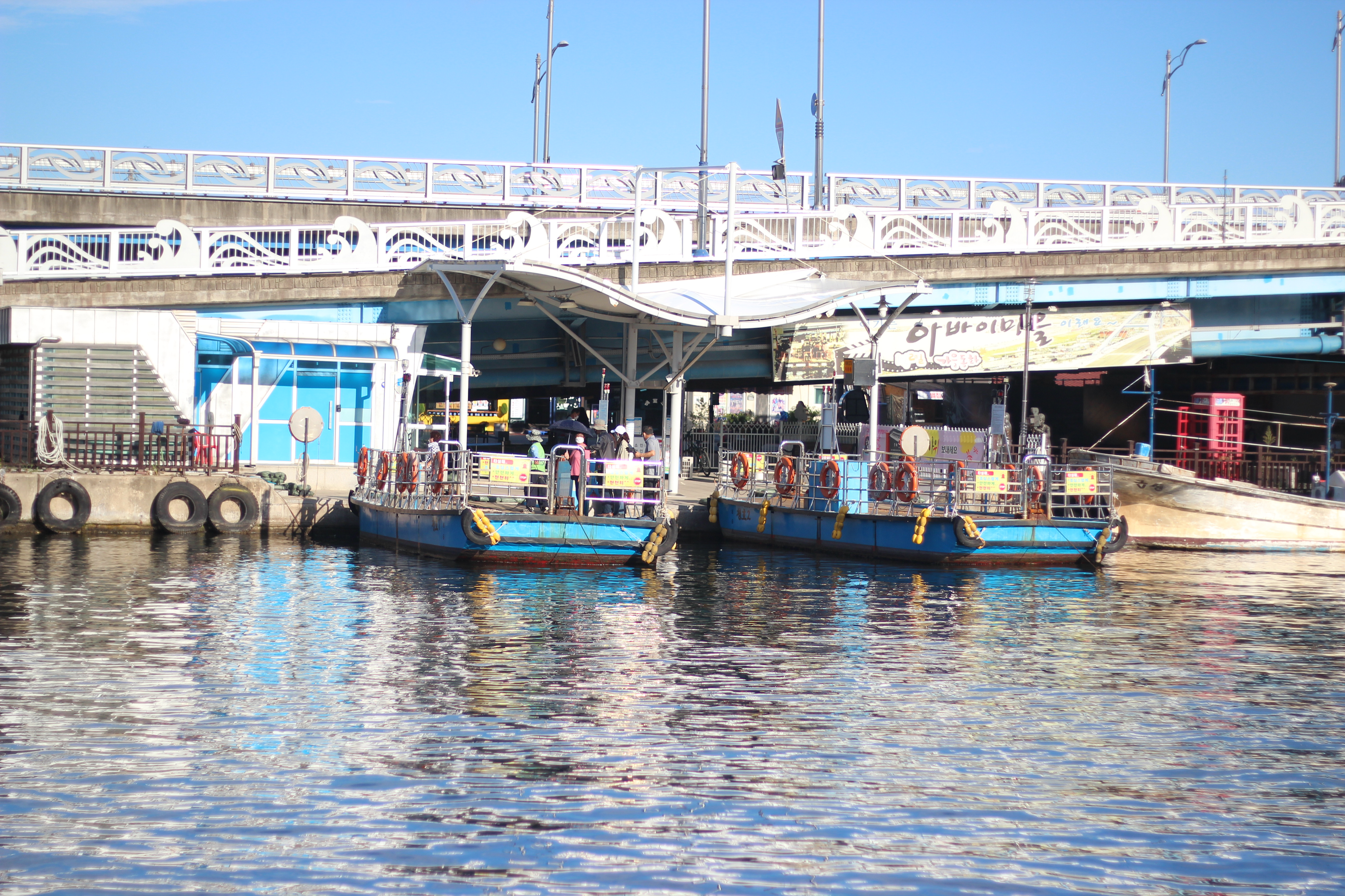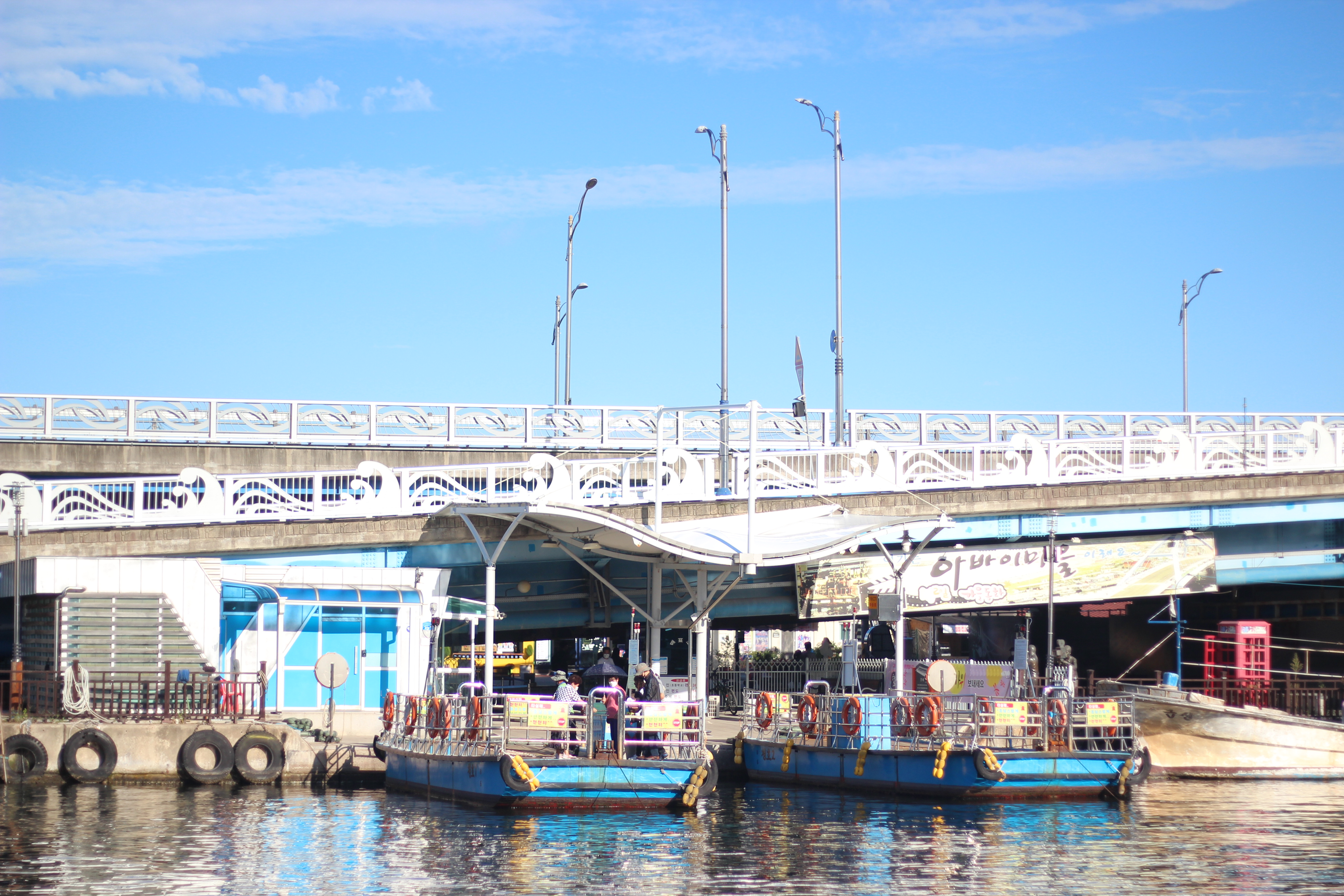 갯배타는 곳에서 왼편을 보면 파란 대교가 보이는데 이 대교가 금강대교입니다. 아바이 마을과 중앙시장이 있는 쪽을 이어주는 다리입니다.